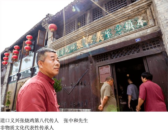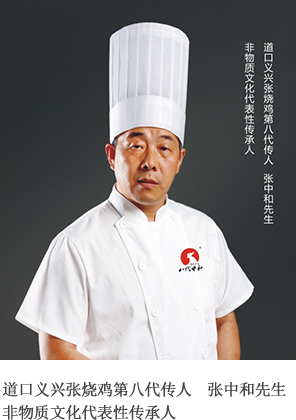 總經理張中和先生,為道口義興張燒雞第八代嫡傳人,非物質文化遺產傳承人。張中和先生制作的道口燒雞,選用地方當年優良健康活雞,沿用傳統燒雞技藝和現代工藝相結合,經十多道工序,佐以十味天然香辛料,輔以循環老湯,精工制作而成,其成品皮色鮮艷,色成柿黃;造型獨特,狀如元寶;口若銜趺,異香濃郁;熟爛脫骨,咸淡適口。