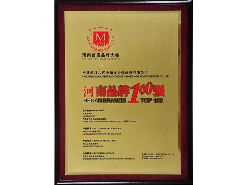 八代中和牌道口燒雞曾榮獲國家地理保護產品專用標志和97年榮獲河南優質產品、中國餐飲協會“中華名吃”等榮譽稱號。